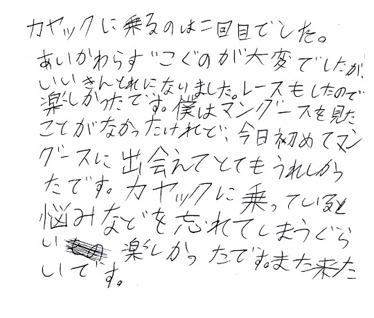 に出会えてとてもうれしかったです。カヤックに乗っていると